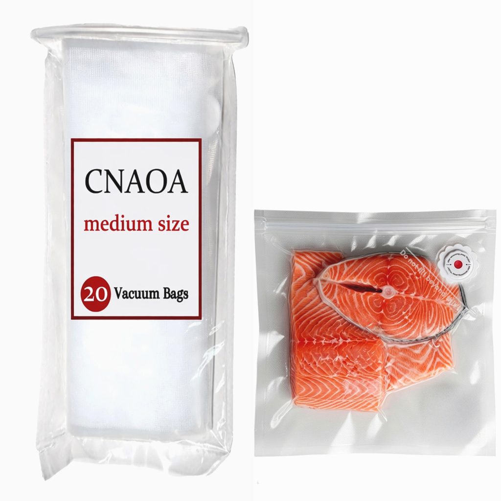 CNAOA 3rd-Generation (8″ x 9″) 20 PCS Upgraded Reusable High-Seal Bags (Vacuum Sealer Machine Not Included), Compatible with CNAOA Vacuum Sealers